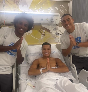 Cirurgia de Marlon é um SUCESSO e lateral do Grêmio pode voltar aos gramados ANTES do previsto! 💪🔵⚪ O lateral-esquerdo Marlon, que chocou torcedores e companheiros com uma grave fratura no tornozelo direito durante a vitória do Grêmio sobre o Vitória (pela 7ª rodada do Brasileirão 2026), passou por cirurgia na tarde desta sexta-feira (20/03) no Hospital Moinhos de Vento, em Porto Alegre – e o procedimento foi considerado um sucesso total! De acordo com informações do ge.globo, Correio do Povo e apurações nos bastidores do clube, não houve rompimentos ligamentares graves que agravassem o quadro, o que abre portas para uma recuperação mais rápida do que o inicialmente estimado. O Grêmio projeta oficialmente o retorno do jogador em cerca de 5 meses (o que o colocaria de volta na reta final da temporada), mas a expectativa interna é otimista: Marlon pode antecipar a volta aos treinos e jogos! O atleta deve receber alta hospitalar neste domingo (22/03), se não houver intercorrências, e iniciará a fase de reabilitação com uso de imobilizador (robofoot ou bota) por 4 a 6 semanas, seguida de fisioterapia intensiva. Marlon, titular e peça importante no esquema de Luis Castro, sofreu a lesão no segundo tempo da partida na Arena – um lance que parou o estádio e gerou comoção imediata. A torcida gremista já lotou as redes com mensagens de apoio e agora comemora essa atualização positiva. Força, Marlon! O Imortal conta com você de volta mais forte do que nunca. 🩵💙